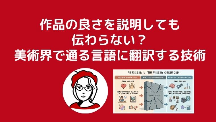 本記事では、感覚的・視覚的な情報を、美術界で通る論理的な言語へと落とし込む「翻訳の技術」とその設計思想について解説します。この記事を読み終える頃には、言葉に対する漠然とした苦手意識が、「正しいフォーマットを知らなかっただけだ」という構造的な理解へと変わっているはずです。
